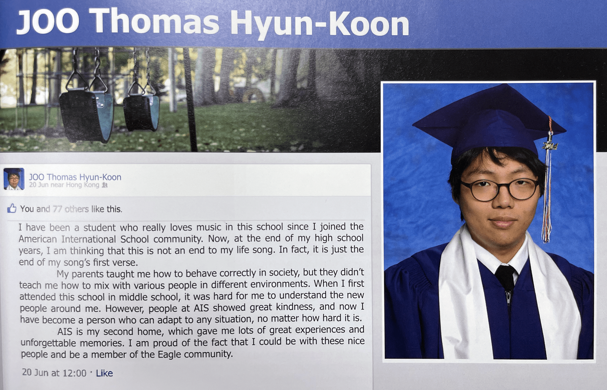 I graduated from AIS, where I studied from 8th grade through high school, in either 2013 or 2014 – I’m afraid the exact year eludes me as so much time has passed. All I can say for certain is that I spent five years at AIS.