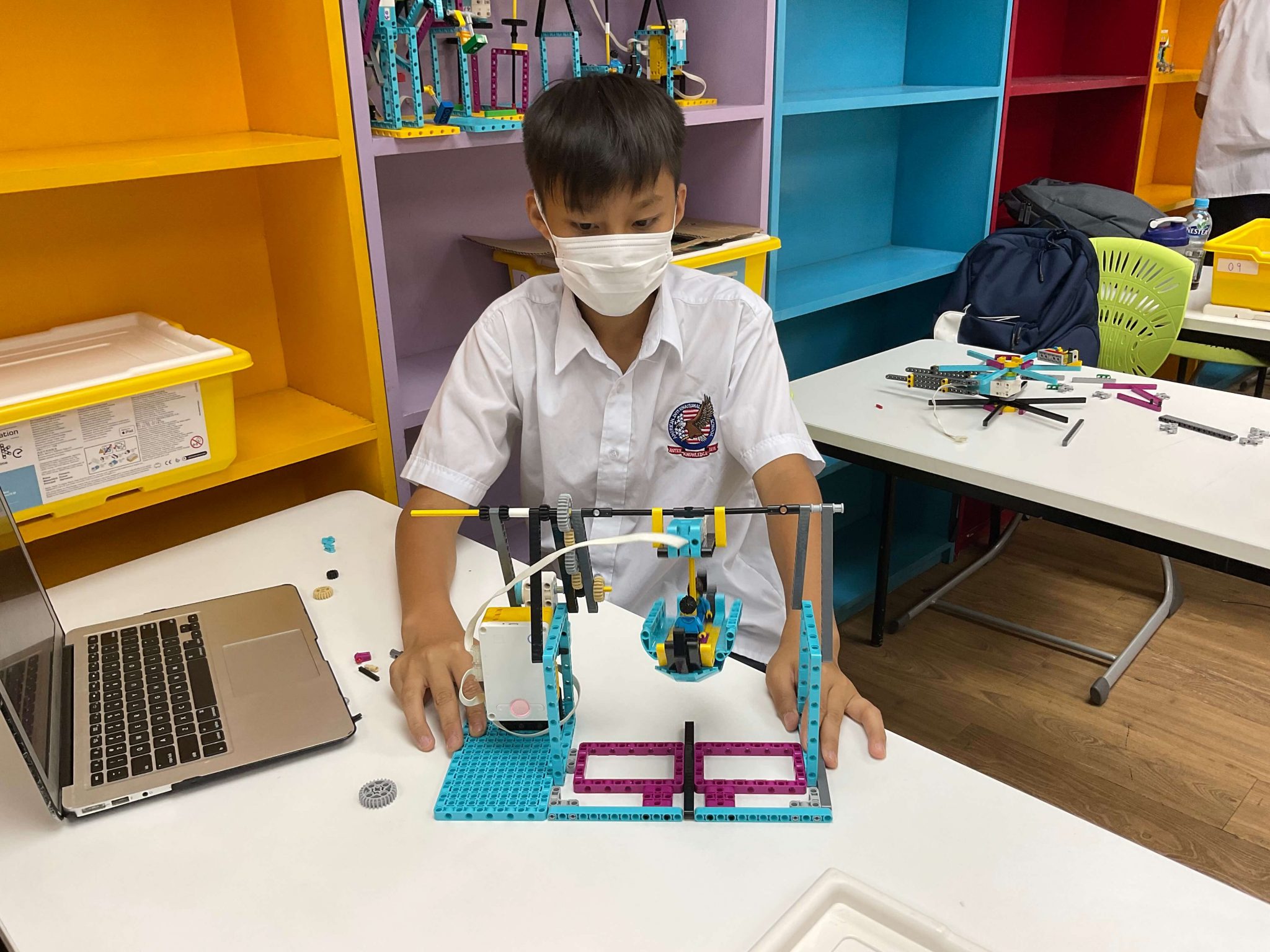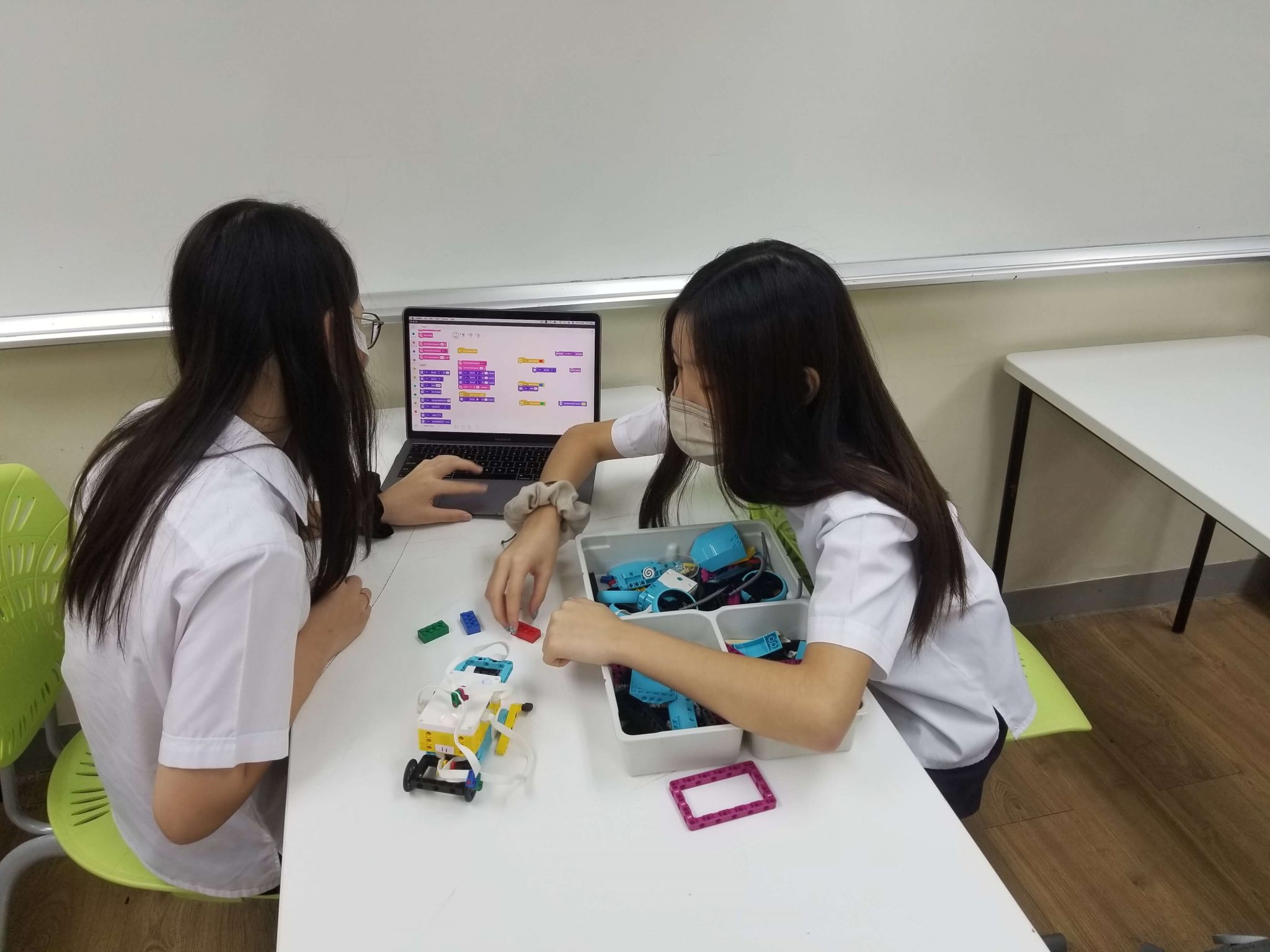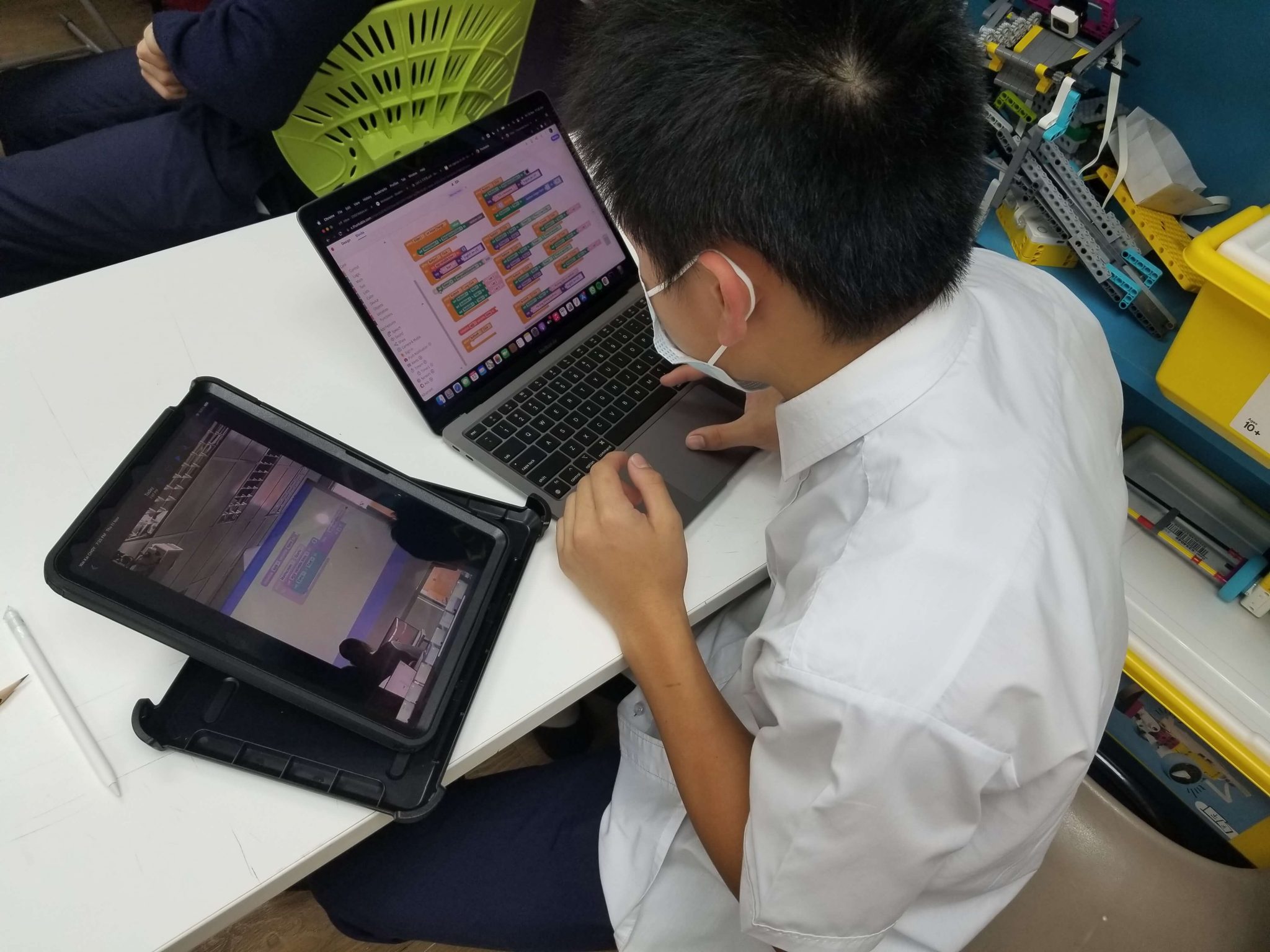 From October 25, 2021 to November 19, 2021, Grade 7 and 8 students in Ms. Isabel Law’s Engineering, Design, and Innovation class worked with a class set of iPads during their unit on Algorithms and Programming as well as their unit on Design and Technology. Students worked with three major apps on the iPads. One was the Lego Spike Prime app that provides Block Programming, Proper Programming (Python), and Building Guide options to help students’ learning.