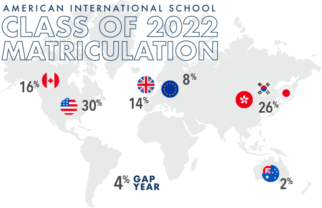 Members of the Class of 2022 matriculated to the following regions. Please note the final Class of 2022 matriculation results will be updated in the fall and shared in the AIS High School Profile 2022-23.