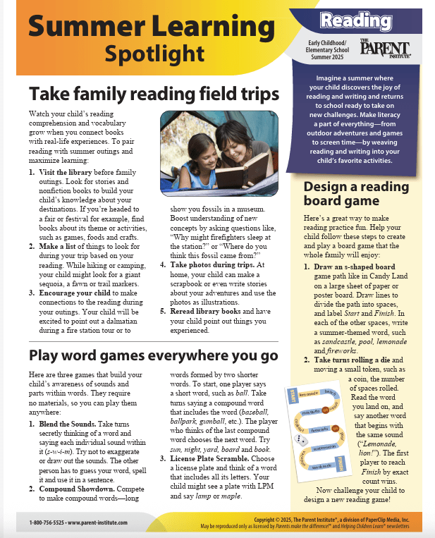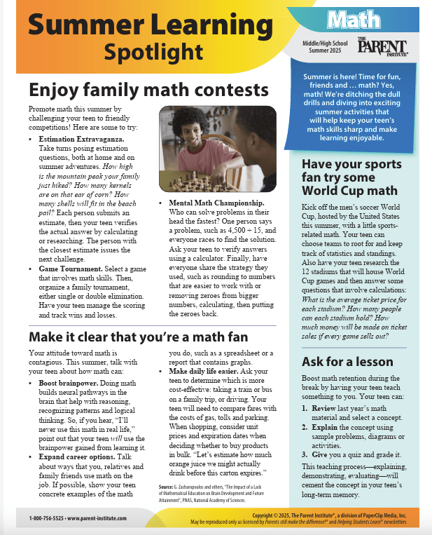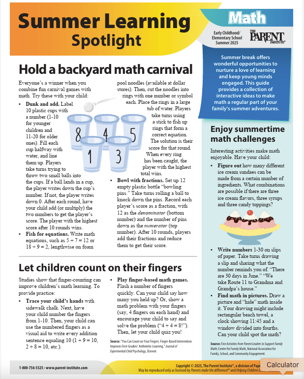 The Summer Learning Spotlight on Math and Reading resources from our Parents Make The Difference collection are incredible publications that parents will find especially helpful over the summer. They are conveniently linked below for your convenience.