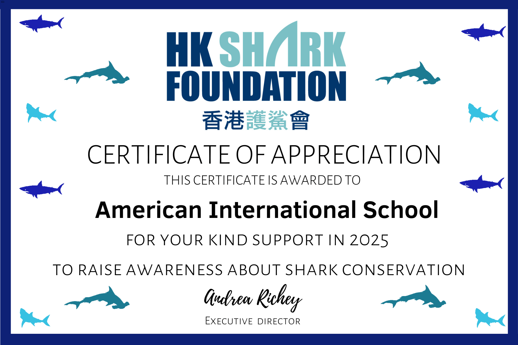 We are thrilled to announce that AIS donated HKD 11,727 to the Hong Kong Shark Foundation (HKSF) on 30 April Charitable Free Dress Day. This contribution exemplifies our shared commitment to the protection of sharks and to the United Nations Sustainable Development Goals (UNSDGs).