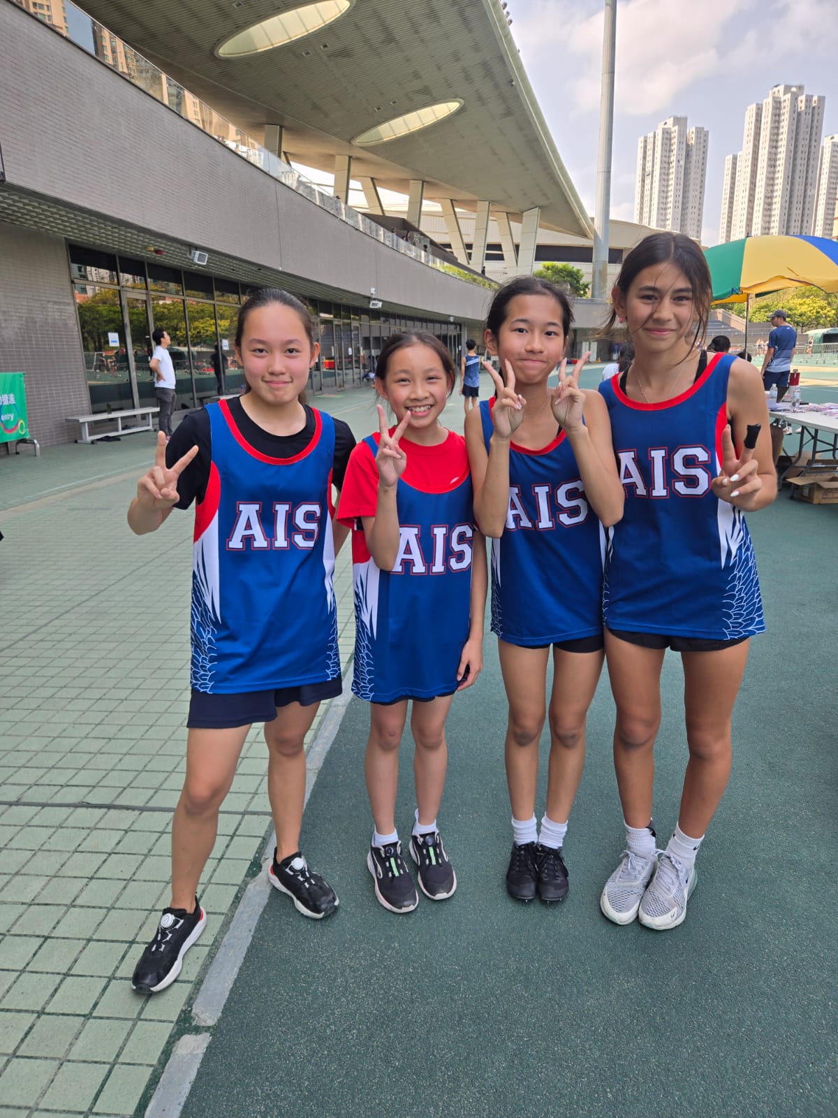 Junior & Senior Track & Field Team — This year, our track and field team grew stronger, and more AIS students joined in for the championship. We had a bigger junior group of runners who were excited to compete and show their skills. On March 26th, our junior team had an amazing day at the AIS championship and brought home several medals. For example, the U12 girls 4x100m relay team sped to 1st place, making us all so proud! The U14 girls also did great, winning a bronze medal in the high jump event with some awesome jumps. Everyone cheered loudly for their hard work and big smiles. We’re so happy to see our younger athletes shining this season!